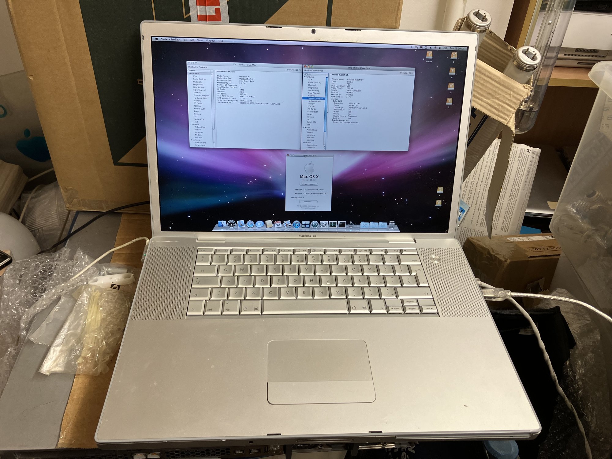 Running it with the display from 15" A1138 at the moment. You can see 17" display behind it. Booting from external FireWire drive, starting with screwdriver.