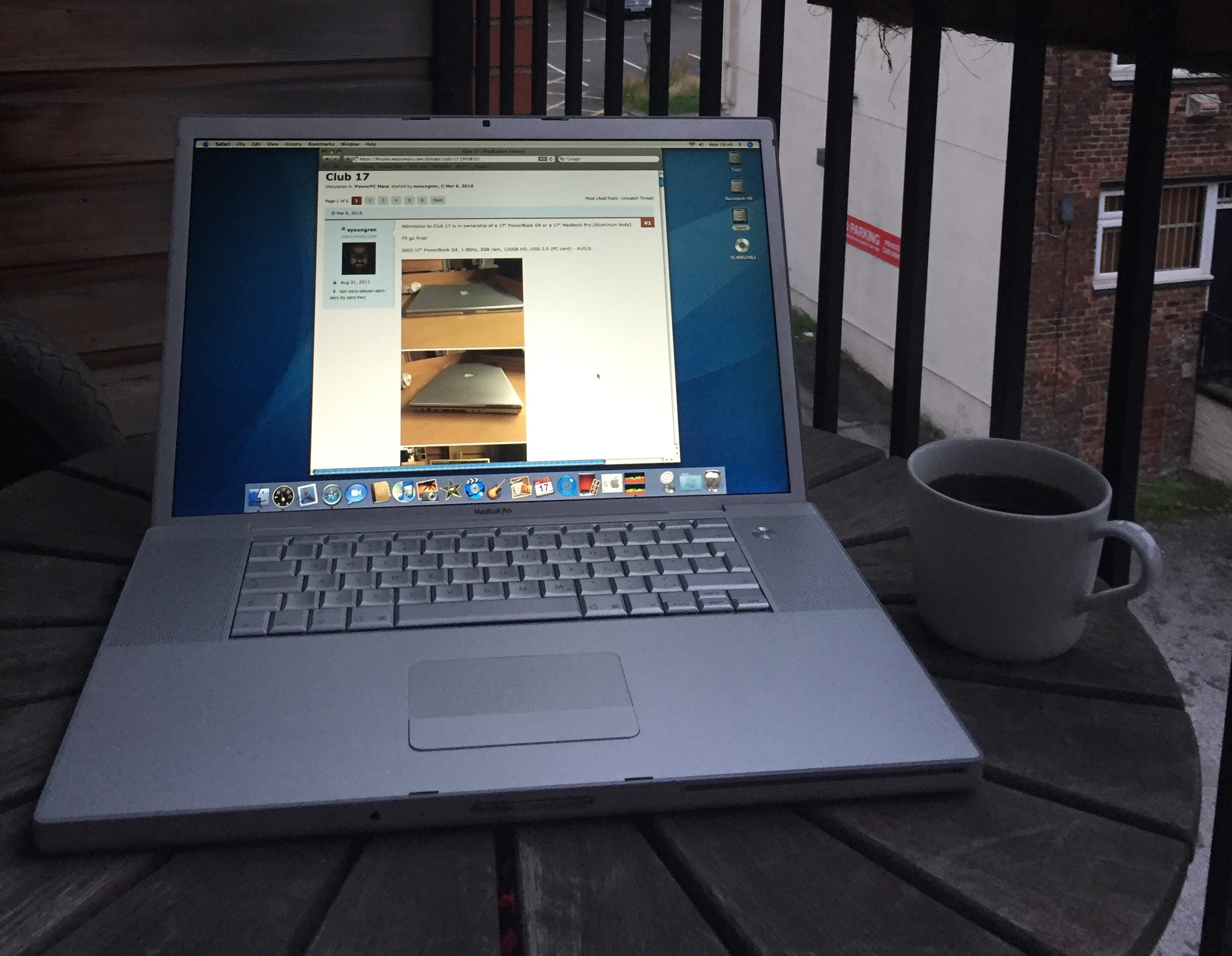 You have nothing to worry about......yet! It's when you start contemplating the purchase of a garden shed just to store your collection of boxes that the 'illness' really taks hold!This forum is such a bad influence on me. The GF is going to prohibit me from coming here! Why do I say this? Federal Express just dropped off my 17" PowerBook. It's the 1.5GHz 5,5 model which looks to be very well equipped. 1.5Ghz processor, 2GB RAM, 80GB drive (unfortunately the 4,200 RPM version), SD, and pretty much everything else that comes with this system. It's in very good condition with some minor dings along the edges (seems to be fairly common in the AI models) and a quirk with the "p" key (functional but looks like it needs to be removed and reattached). Really nice system...clean, clean, clean. All for the low price of $25.00 delivered to my door (it was a untested / parts only sale). At the rate I'm acquiring the G4 generation laptops I'm going to have to splurge on a second power supply!
