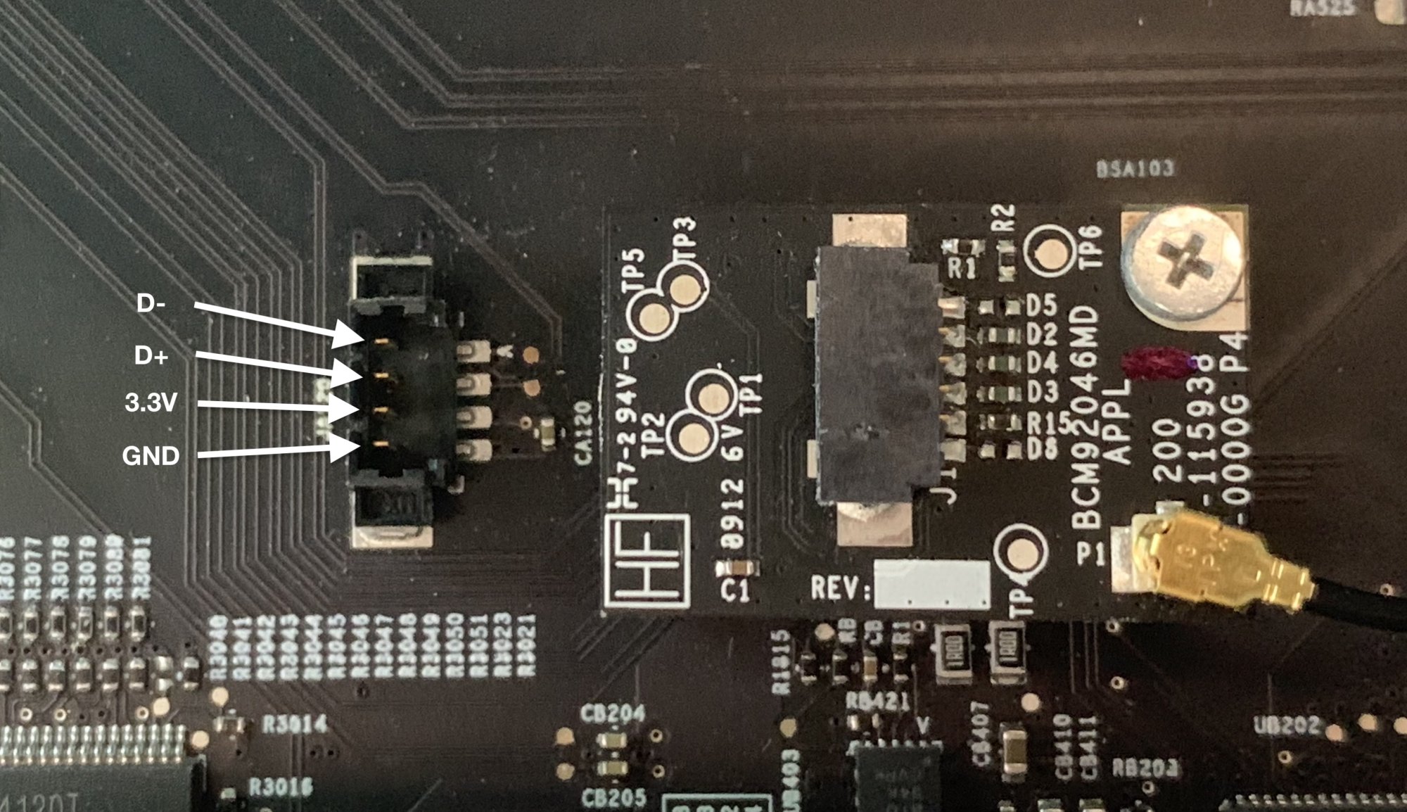 Eventually the existing little BT controller (BCM92046MD) will be replaced by the WiFi+BT combo card (BCM943602CDP).