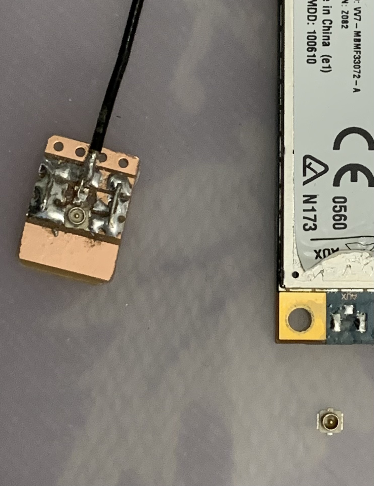 Next, removed the long test cables, made much short ones, removed the BCM92046MD & exiting Wi-Fi card and replaced with BCM943602CDP and added a 2-wire (D+ & D-) cable for the BT controller on the BCM943602CDP: