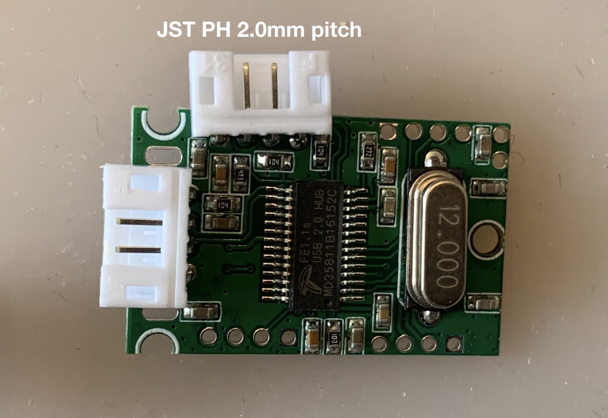 - JST PH (2.0mm pitch) for the USB Hub board