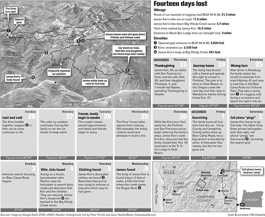 Looking at the site, it looks as though he was following the natural drainage ravine, either for more protection, out of confusion/hypothermia or something else. It looks to me that, had he taken a different turn, he would have turned up at the Black Bar Lodge. I assume