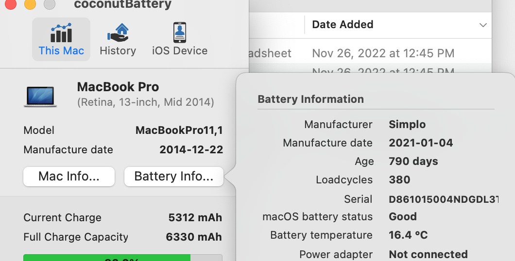 I have a mid 2014 MBP. I installed a new battery. With Mojave Coconutbattery said my new battery was made in 2022. I then upgraded to Big Sur. Now it says the battery was made in march 2015. 🤨