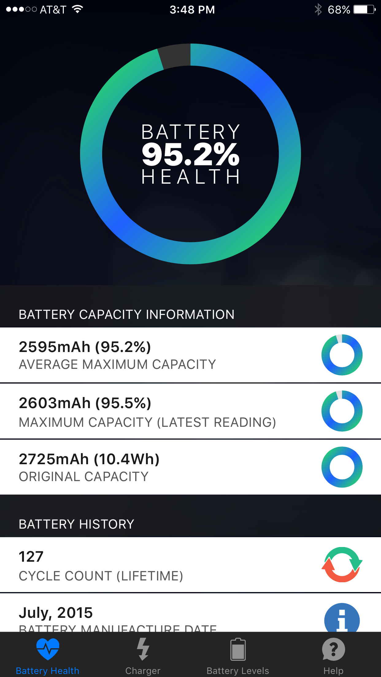 Thx echo. However 6s battery seemes bad. Our both iPhones lost 5% after 110 cycles. My old 5s has lost just 8% after 500+ cycles. How reliable is this raw value?I'm the developer of Battery Health and so I can comment on this. Basically, iOS exposes two maximum capacity figures: The "raw" capacity as it is calculated by the gas gauge chip, and an Apple calculated Maximum Capacity value which is basically the raw value rounded up to 100mAh. CoconutBattery uses the raw value, while my app and iBackupBot use the rounded number.