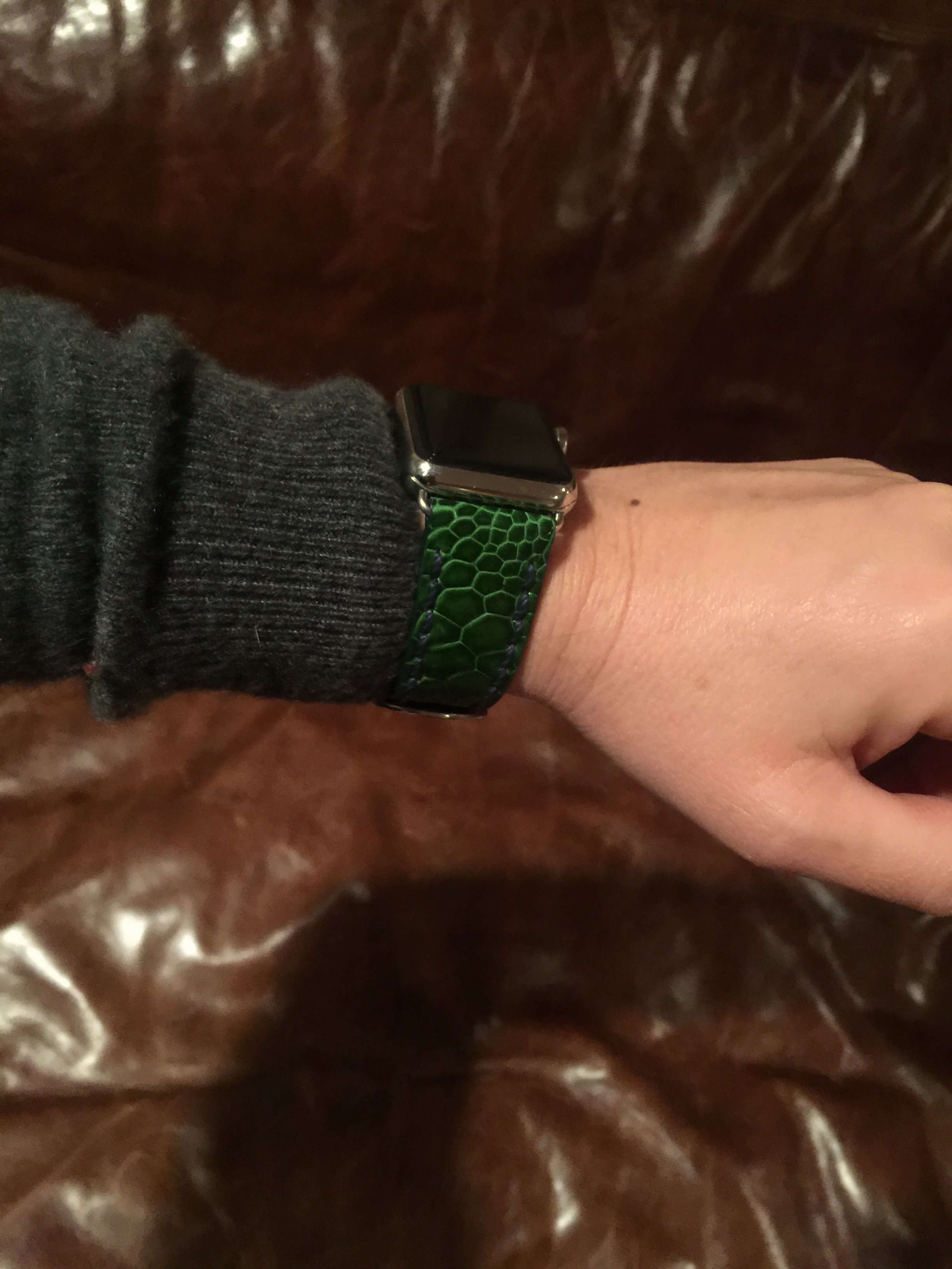 Oh, and I picked up the Electric Blue Suede Alligator with patina stitching you see below.