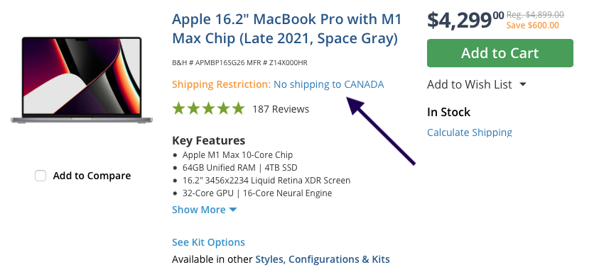 What about buying from B&H? They're also substantially disccounting the M1 Pro/Max MBP's, and do ship to Canada: