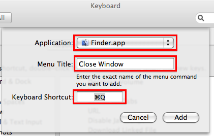 I know that you can't do that, you have to press command + W but I find myself doing it a lot. Is there a way to get command + Q to close a window in Finder? I can't figure out a way to do it with BetterTouchTool. Is there a way to get BTT to substitute keyboard shortcuts? Or any other ideas are welcome.
