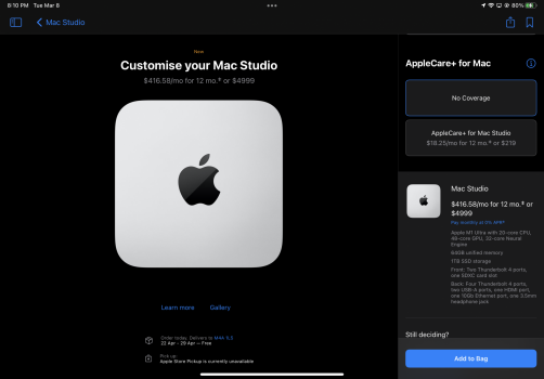 Did you notice on Apple’s site for all builds of the Mac Studio only has 12 months of Apple Care+ ?