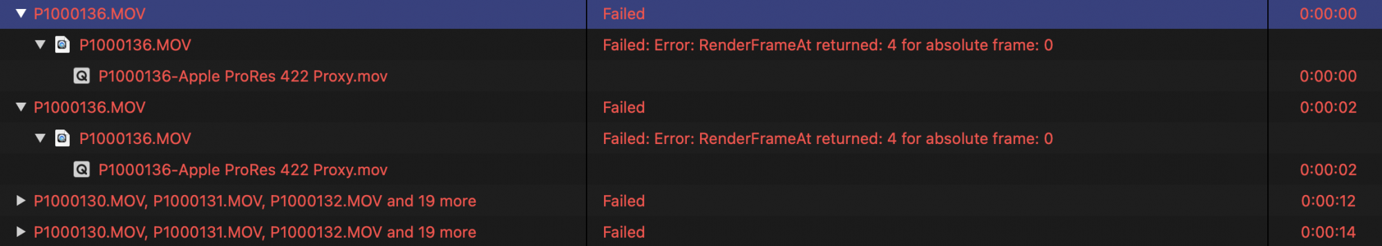 I'm trying to convert some 4K h.264 footage from my DSLR to ProRes to edit in FCPX but keep receiving this error message: