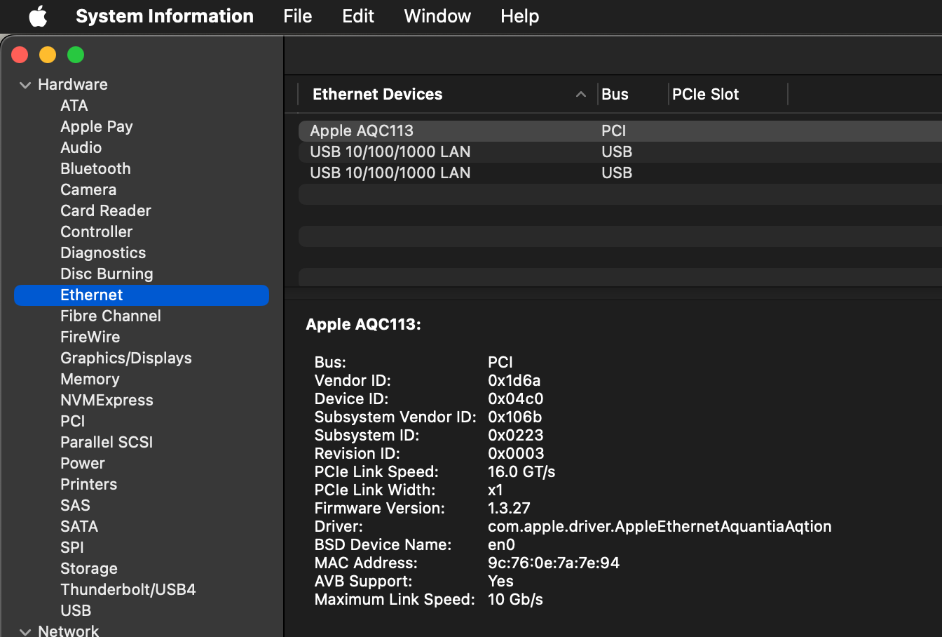 I went into the System Profiler, and saw something strange: