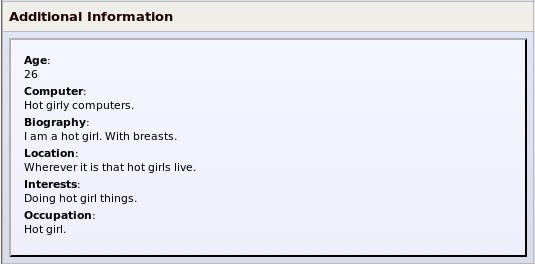 Took teh words from my mouthThat profile screams out Not a Girl to me![]()