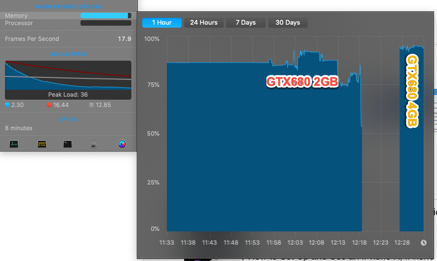 I just picked up a Zotac GTX 680 4GB to replace my EVGA GTX 680 2GB in my cMP4,1>5,1. With all the same apps opened and the memory usage is higher than the 2GB model. I was expecting the usage to go down 40-50%, obviously it didn't. Any ideas to why?