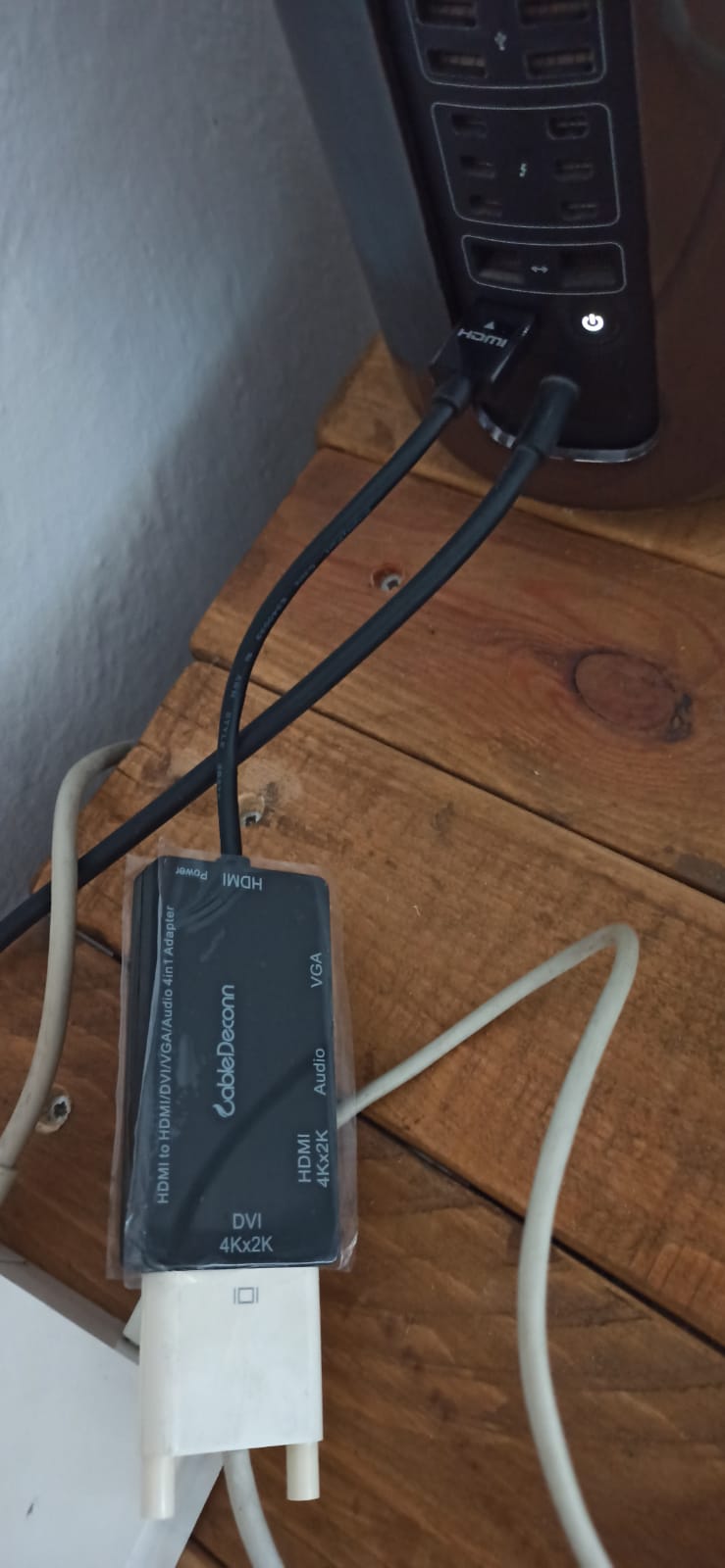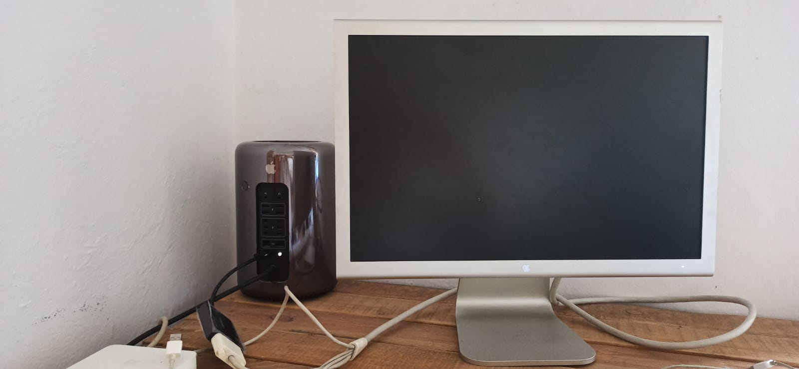 Hello everyone, I'm having some trouble connecting my old Apple Cinema Display monitor to the Mac Pro early 2013. I'm attaching photos of the connection, and I kindly ask if anyone can tell me if I've done something wrong. I'm not very experienced, so perhaps I made a mistake or I'm missing some kind of adapter. The monitor is powered on, but I'm not seeing anything. I made the connection using this adapter: