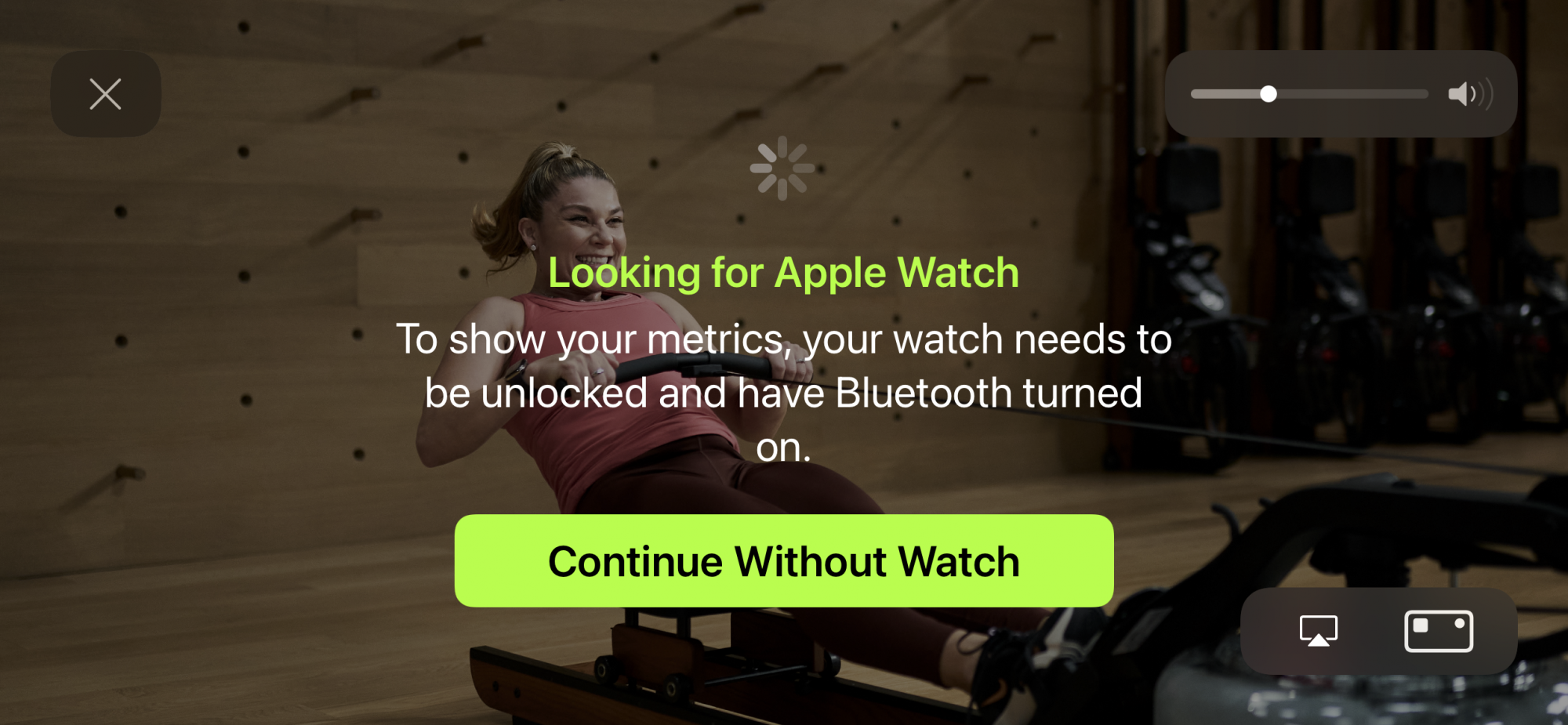 I will start a Fitness + workout, doesn’t matter if it’s downloaded or streaming, and I will get the pop up window that says “cannot connect to Apple Watch, workout without it?”