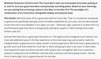 What surprised me, but didn't was that Apple had a run on 2015 MBPs, so while the MBP sales did spike with the release of the 2016 model, it wasn't really the 2016 model being sold. I'm sure many people did buy it, but the rosy picture Cook painted was not all accurate.Complaints about the MacBook Pro with Touch Bar I wonder if that means Apple won't support the Touch Bar after this and may drop the Touch Bar model, I was actually thinking about buying one later this year but I might wait now.