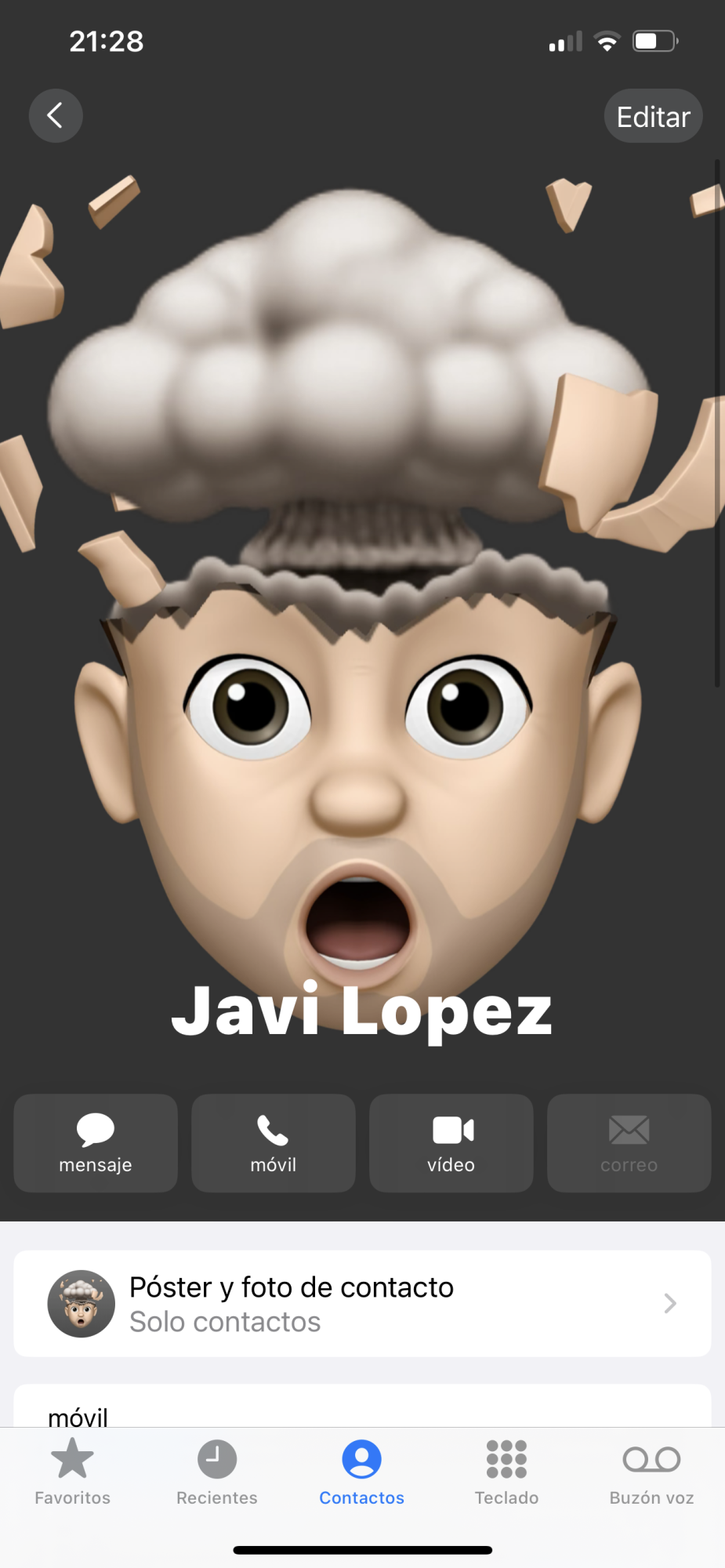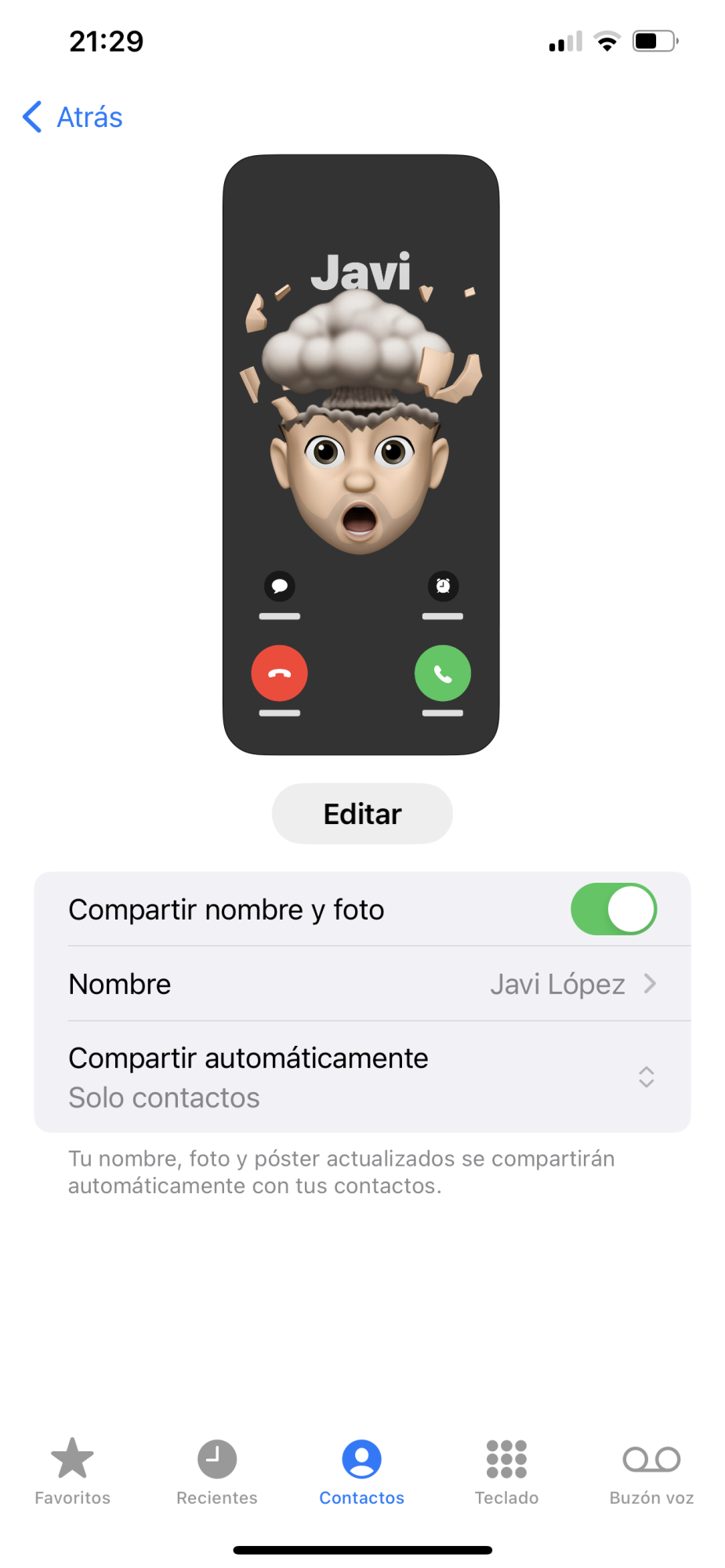 My name is Javi- in my contact is Javi and the contact poster is Javi