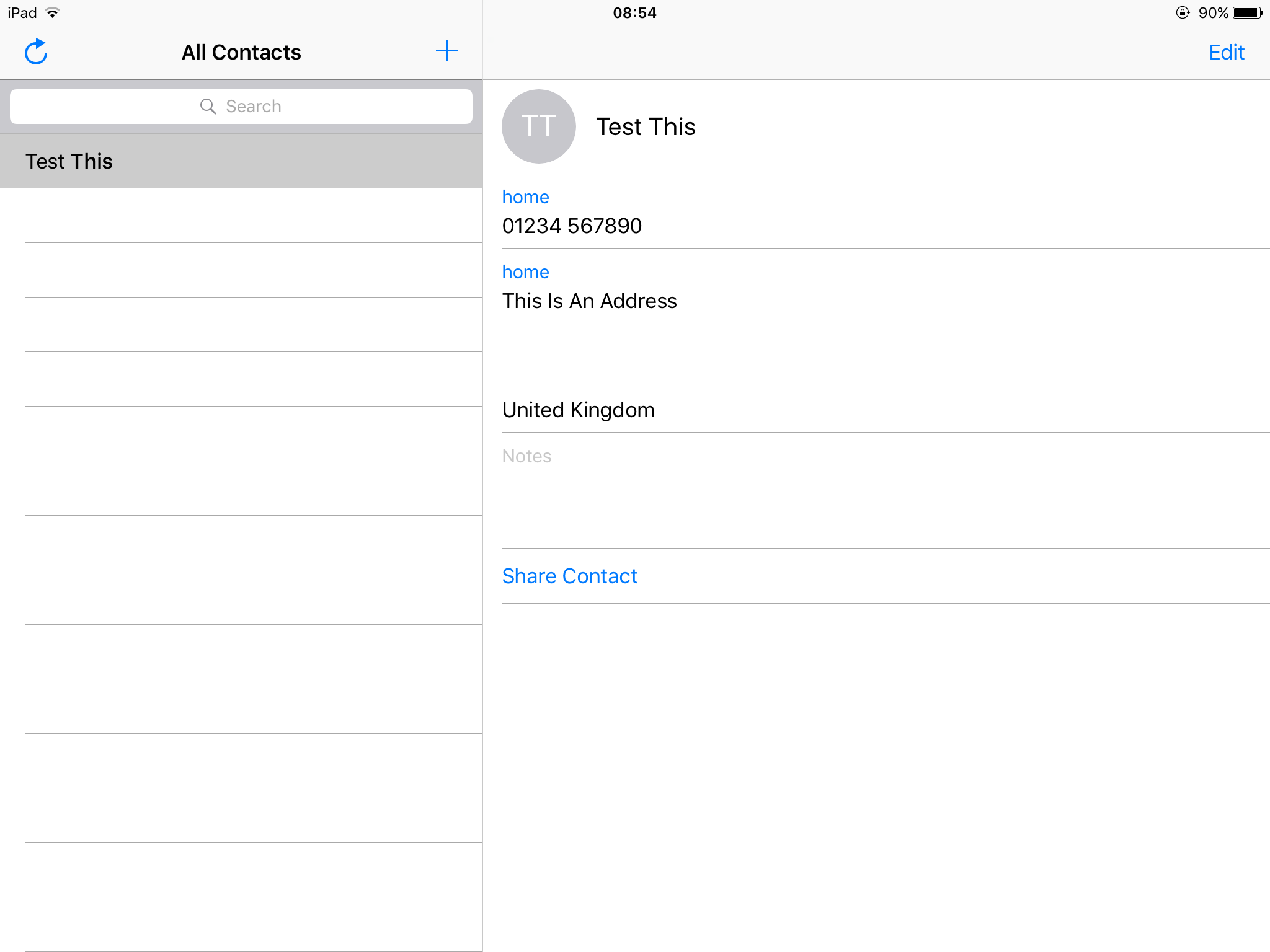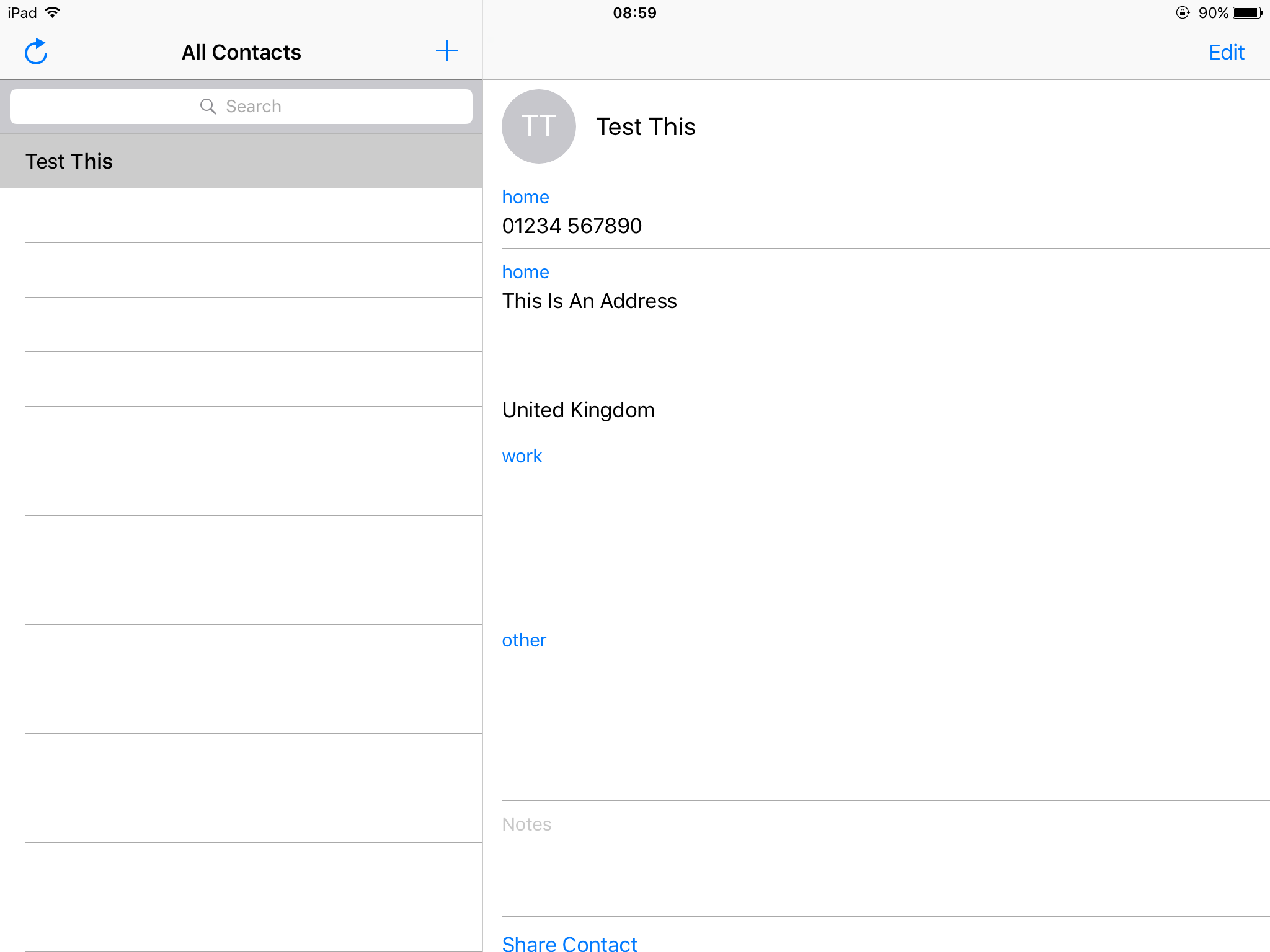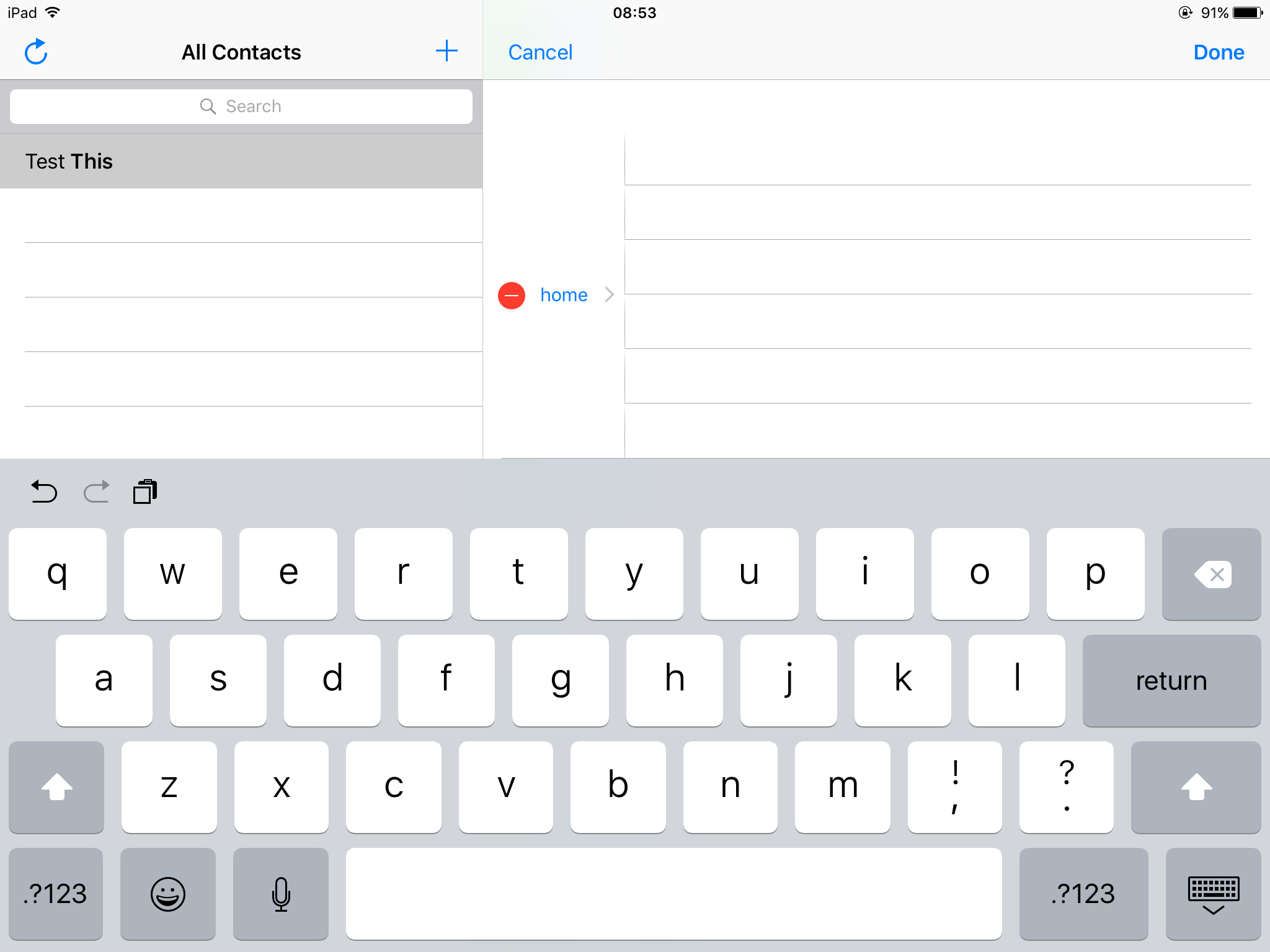 Using Public beta ios9. when trying to edit a contact in the stock Contacts app, if you try to add an address, you cannot see the text as you type it in, but when you click "done" the text is shown.I've inserted screen shots, one shows me in the edit mode, and at that point I had typed "this is an address".