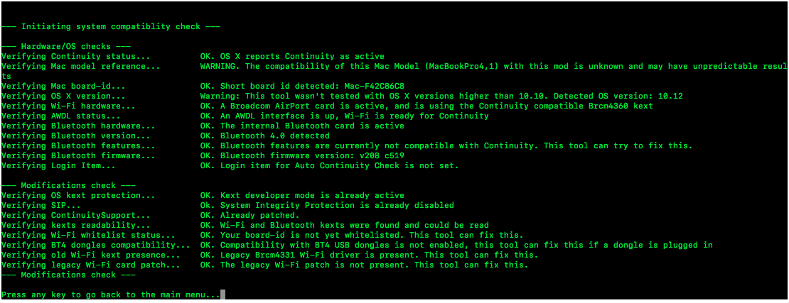 Agreed. I know they'll get it updated and add some of the newer systems as well. I'm still not convinced that 802.11AC is required myself, but we need someone to figure out what that missing piece is. What, specifically, is Apple doing that suggests that protocol is needed. There's some feature of those NIC's - if we can only find out what it is, we may be able to get it working on the older BroadCom chipsets.really thanks for the advice, and beside CAT, I was the first wave to manually edit all the kext files after replaced the wifi-bt module. at that time cloudparid and other stuffs works OOB, but time after time Apple made change to the Continuity mechanism, thank god we got CAT, and it really improved every time to fight with us and nailed it for the old machines.