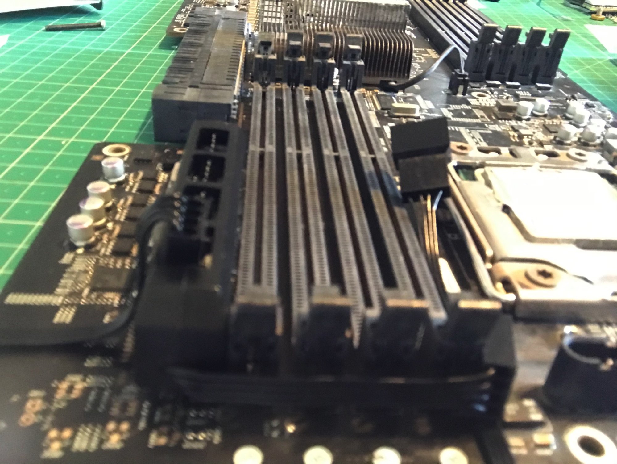 To start with, I upgraded my 2010 5,1 to two 3.46Ghz Xeon Processors. Things are fine there, but I noticed that the Northbridge was quite hot, (likely because of the upgrade), so I started to take steps to lower it. I de-dusted, replaced the Northbridge heatsink clips (with metal ones) and repasted. After all that the temp only came down a couple of degrees. It was running in the high 70s to low 80s.