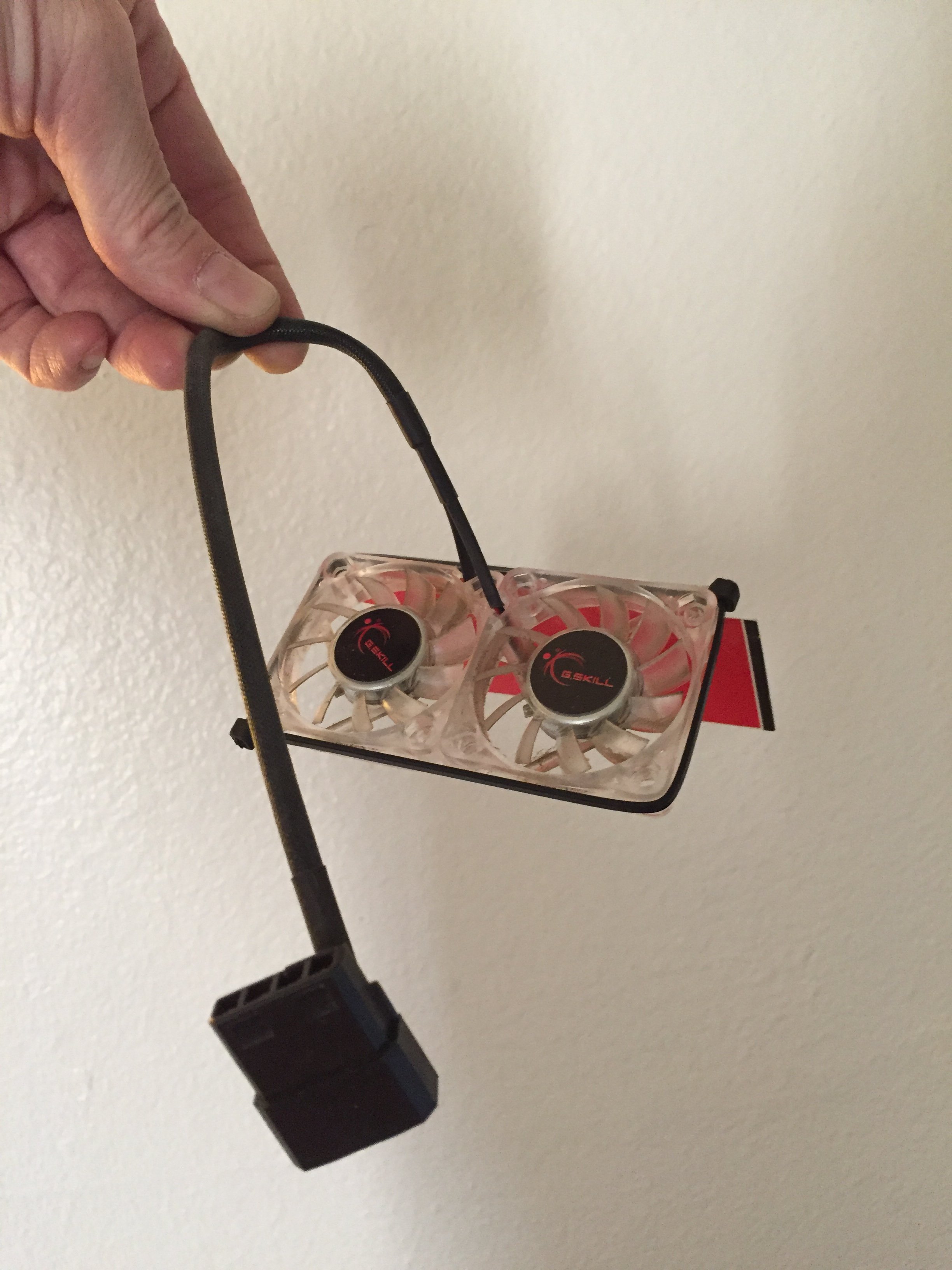 You can run the SATA cable ( extension ? ) down to the CPU tray area and will be able to close the side cover. The Sunon fan comes without a connector - you need to solder the SATA cable to the fan wires.I have an adapter changing SATA power (2nd SuperDrive) to 3-pin fan connectors.