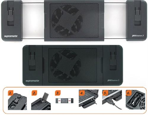 The Prostaton.3 is approximately a third/quarter the size of the rMB. FWIW rMB is the only portable Mac that I have observed that a powered cooler can make a significant difference to performance, should you require it.