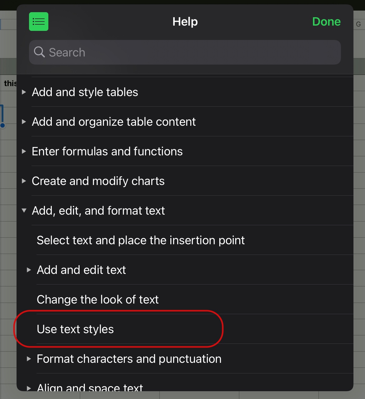 You need to select the text in the cell you want to use as a template. You will then get a "Copy..." or "Copy Format" option (can't recall exact phrasing right now). Tap that. Then select the cell you want to copy to (might need to select the text), at which point should see a "Paste Format". Paste Format.