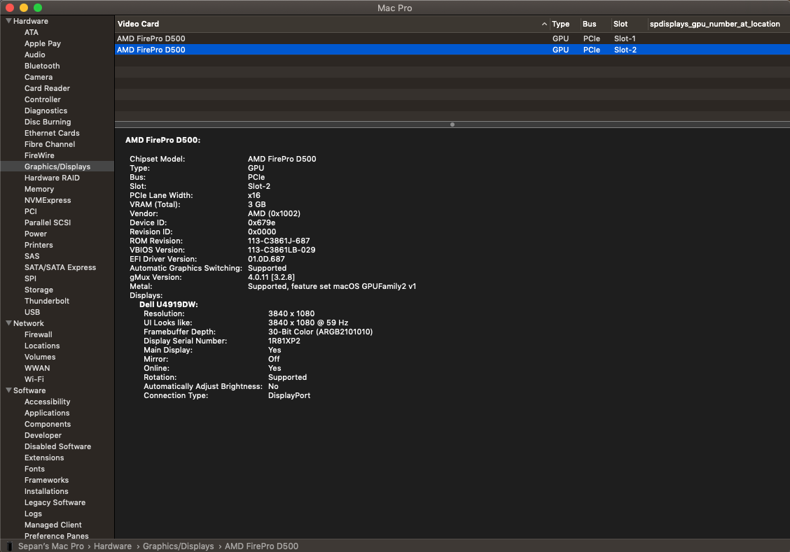 Forgot to add the system profile for Graphics/Display which shows that the screen is being used at the lower res as you would expect (and oddly 30 bit colour)