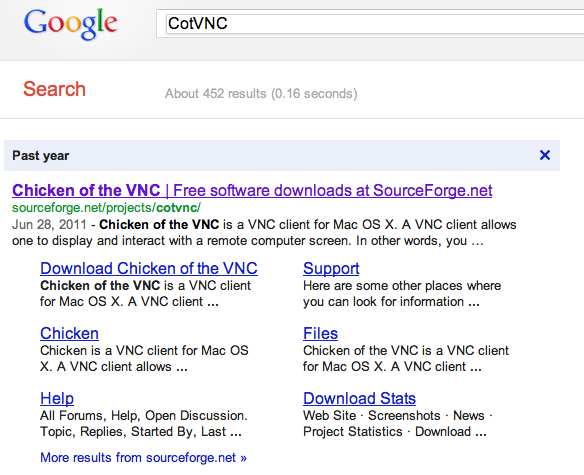ppcg4mac said: Can someone send me to a link of this app, i do not have xcode on my G4, and cannot find a .app file of it. Click to expand... Are you talking about this? http://sourceforge.net/projects/cotvnc/ I found it this way, unless you're talking about something else: