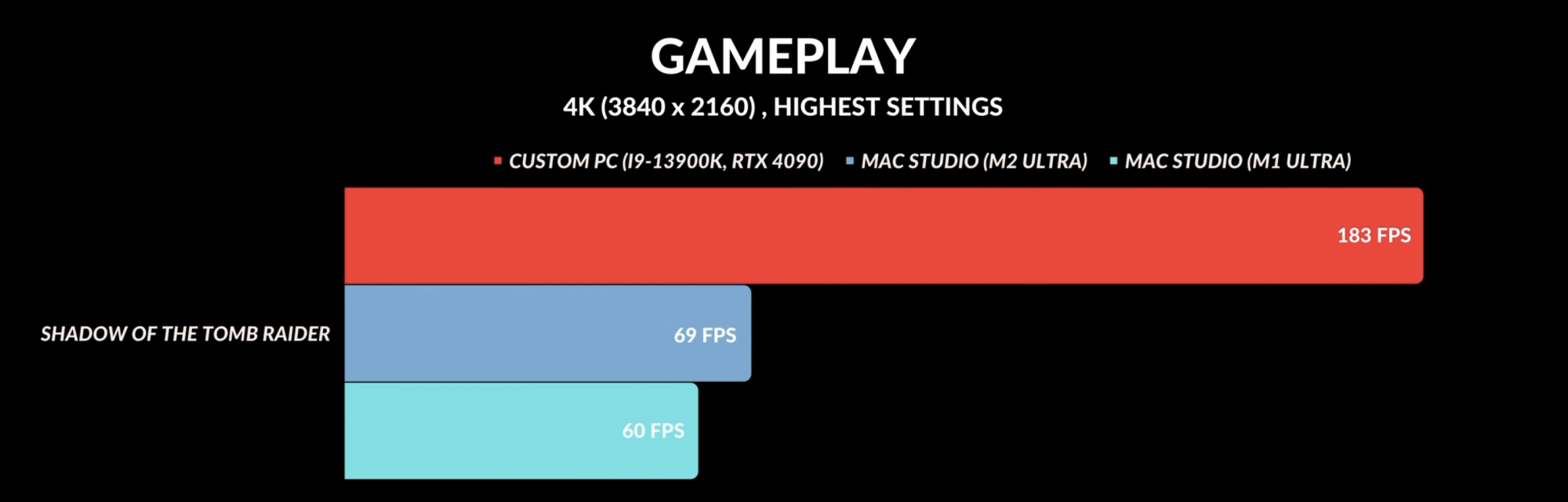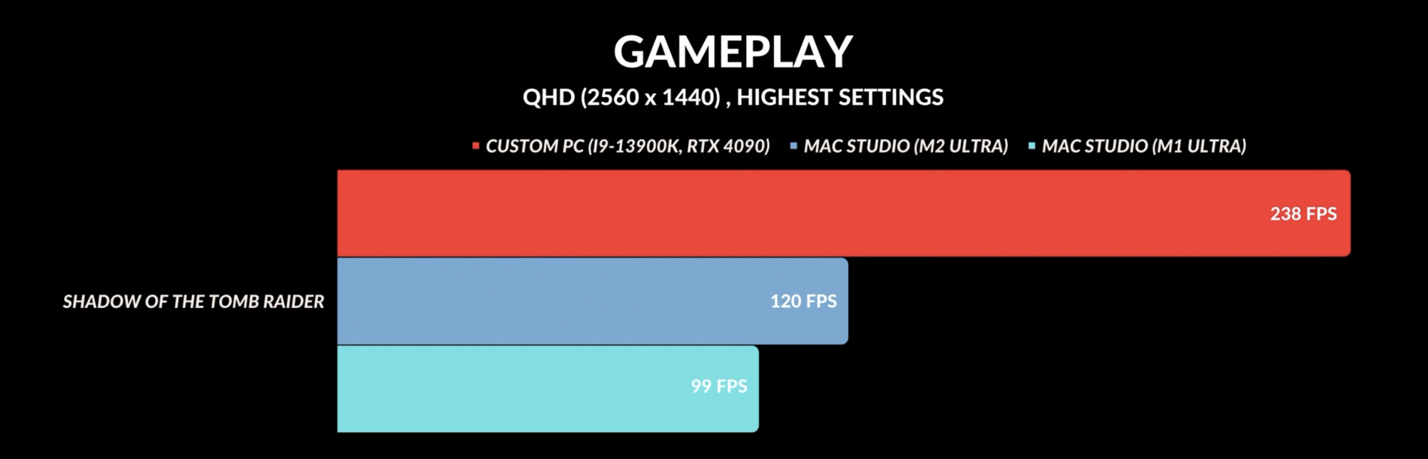 The Mac Studio with an M2 Ultra is a $4,000+ computer so getting beat that hard by a $2,000 PC does not make the Mac stand out as a good choice for gaming.