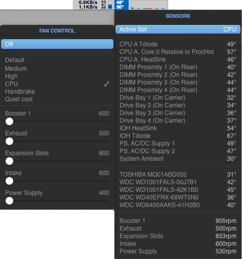Under light usage both CPUs are between 40 and 50 degrees C and I think I do not need to modify the fan speed. That means I have the same level of sound emitted as with my 2x 2,4 GhZ setting.