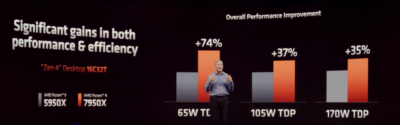 Can we expect similar improvements in Zen4 for laptops (Phoenix/ Dragon Range)?If I were to speculate, much of it probably has to do with the I/O die. It was a power hog on the desktop Zen3 and has been made much more efficient with Zen4. So the entry-level configurations have more power budget for CPU cores. At the high end, diminishing results kick in. At those clocks the top configs must be running well outside the optimal perf/watt range.