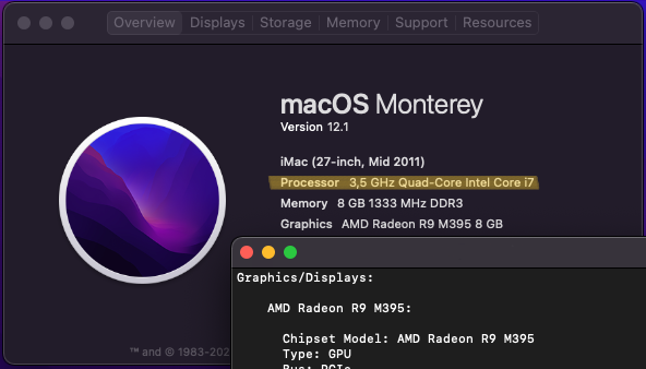 Big Sur and now Monterey (via OCLP). I can't make a screenshot now. The temps are the same as with other 95W CPUs for that iMac, ie. as hot as Apple lets them cook. ;) (Do not use those 95W CPUs instead of 65W counterparts in 21.5' machines...)