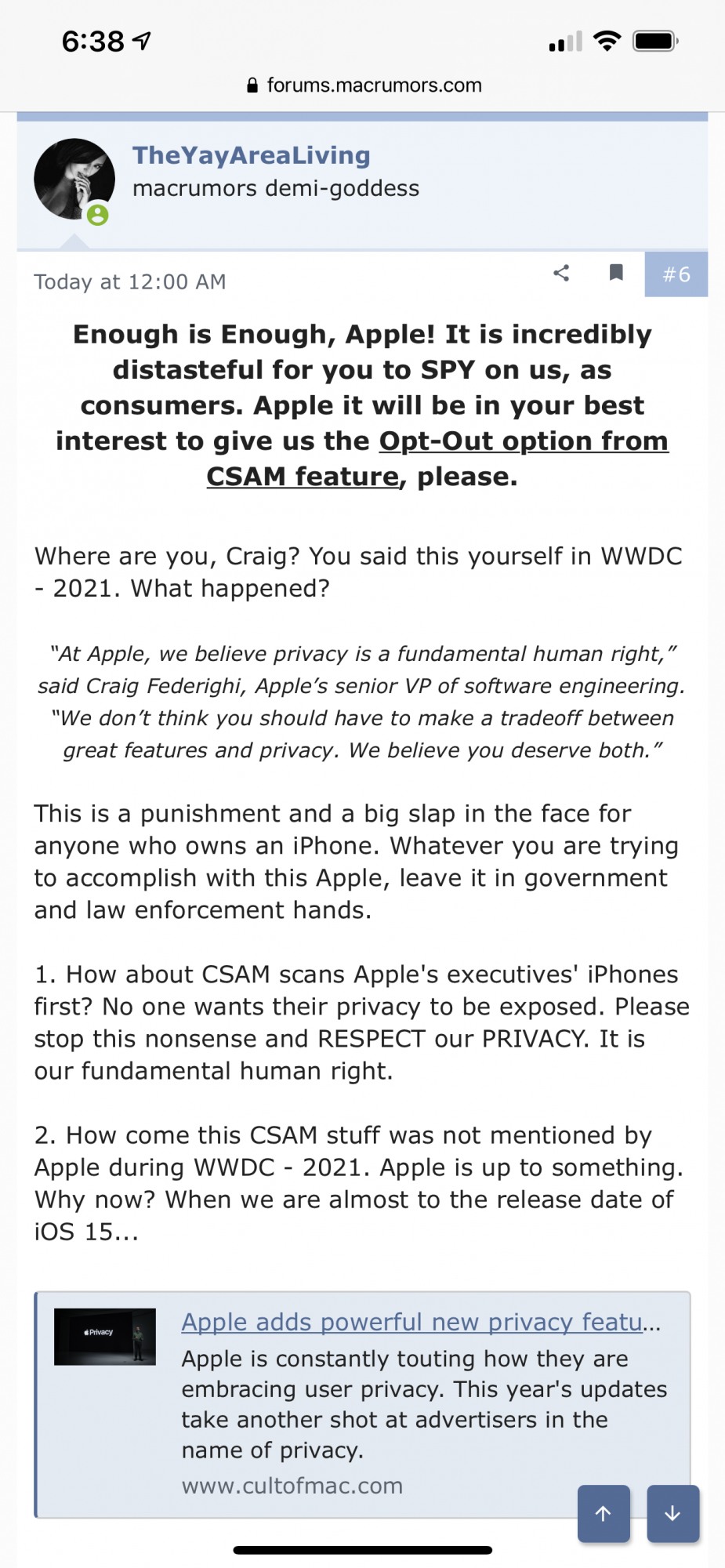 Article Link: Craig Federighi Acknowledges Confusion Around Apple Child Safety Features and Explains New Details About Safeguards