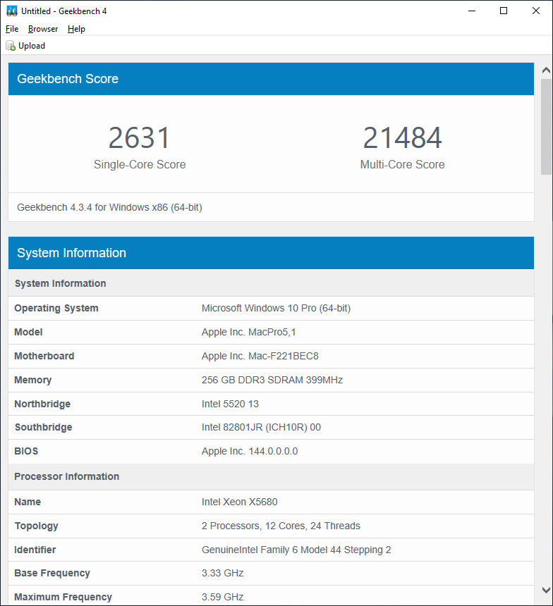 Looking at your 8x32GB setup, your memory timings under windows are 6 6 6 15 which is 800 MT/s and your cycle time is 10 ns.. Your memory is effectively running at DDR3 800 or PC3-6400 speeds.