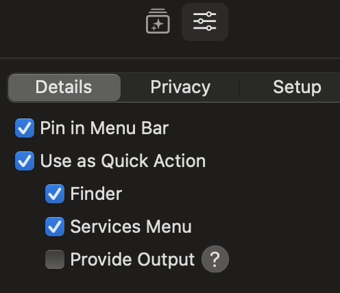 Does Quick Action needs any file or folder special permissions which I am missing on.Beats me, this was recorded on M1 12.5.1 (21G83), Run Shell Script version 2.0.3