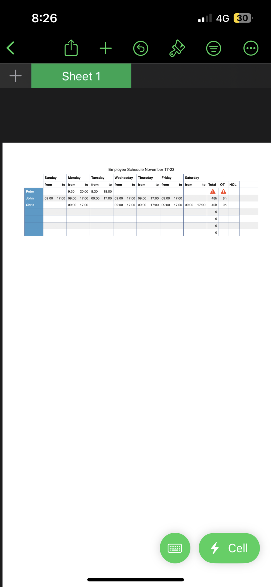Hi! A friend of mine asked me this question: How do you (and can you?) create a schedule using numbers that will calculate the number of hours in a workweek per employee? In other words, let's say the schedule says I work on Mondays 9am to 3 pm and the rest of the week I'm off, the schedule is going to show the days and times I work and one "total hours" column which in this case will say " 6 ". I googled it and searched the archives here but no luck. Thanks in advance!