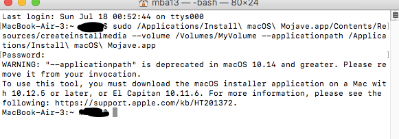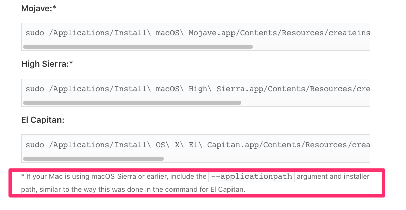 In order to do a clean install of Mojave, I'm creating a bootable USB. The instructions from Apple are here: