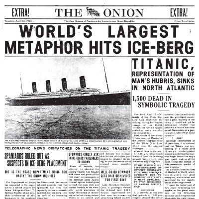 To be fair, though, the Titanic IS the World's Largest Metaphor, at least according to The Onion.![]()