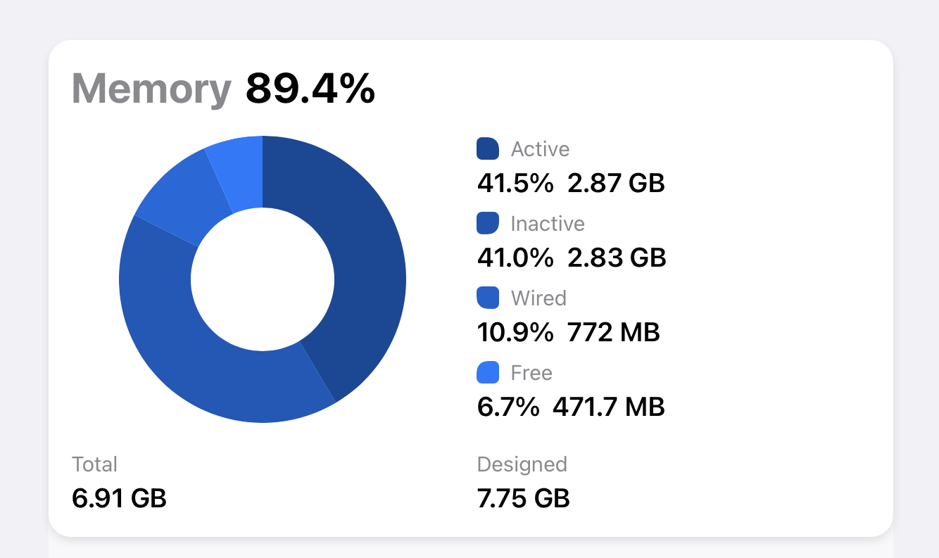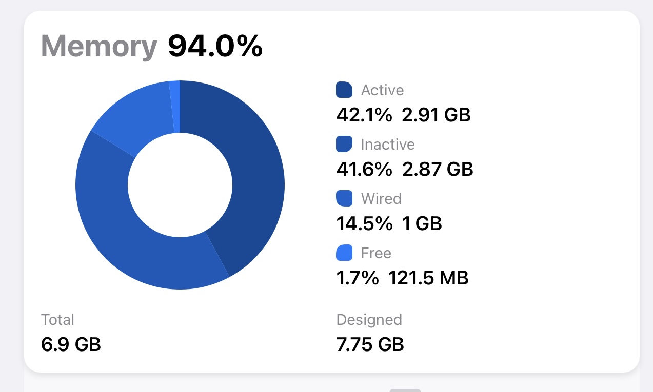 The iPad is using almost all the 7GB of available RAM according to the app.