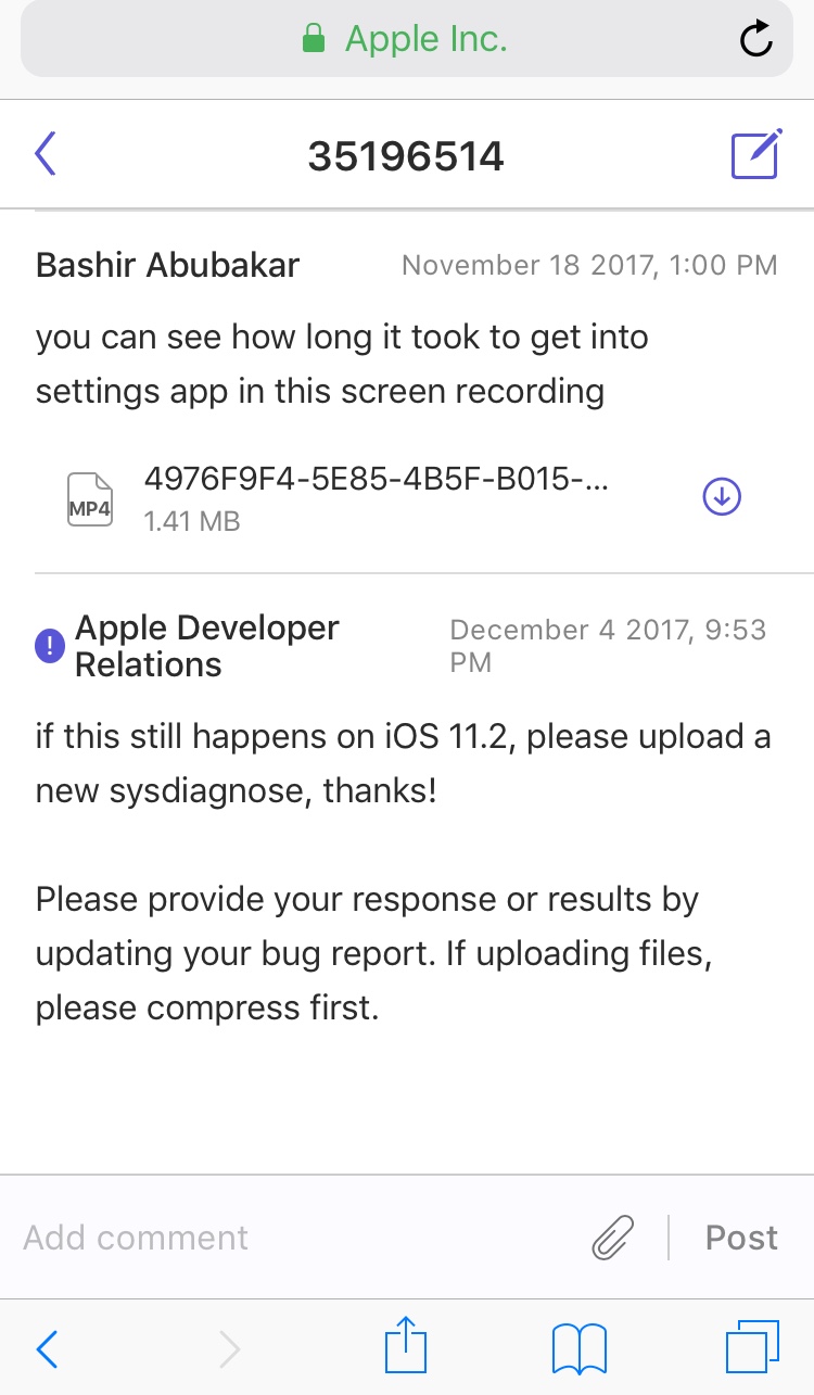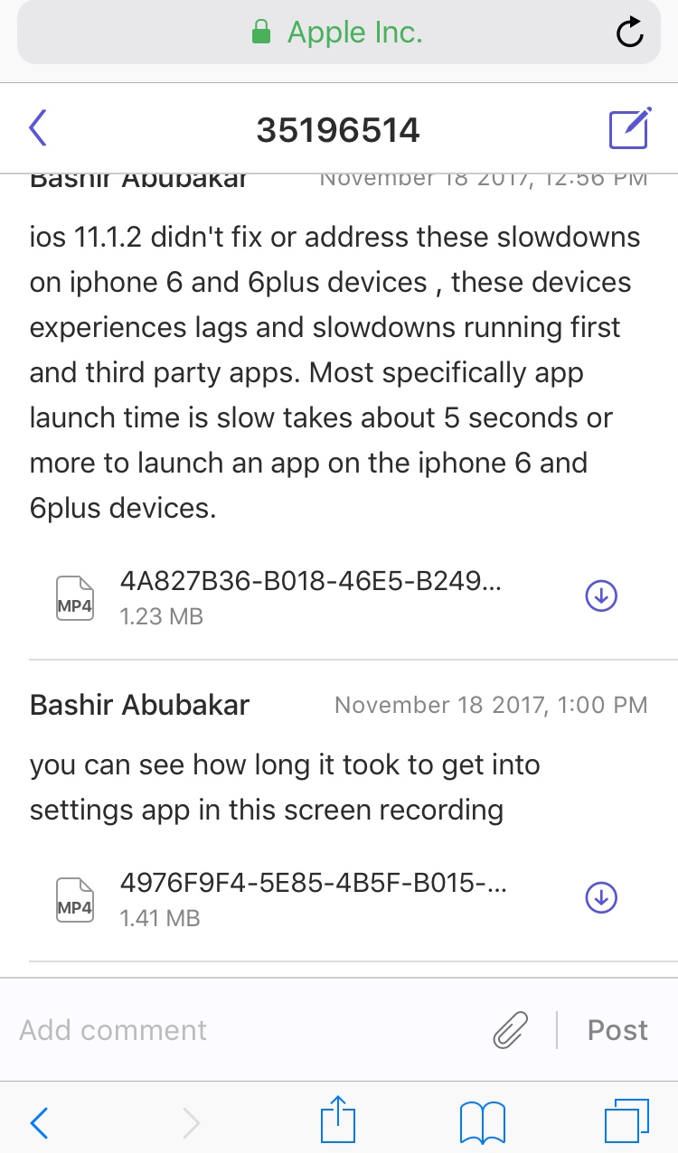 [doublepost=1512492285][/doublepost]View attachment 740376 View attachment 740377 View attachment 740378 my report to apple bug reporter haven't seen the fix for lags and stutters yet so i'll keep texting them until we see a better change on ios 11