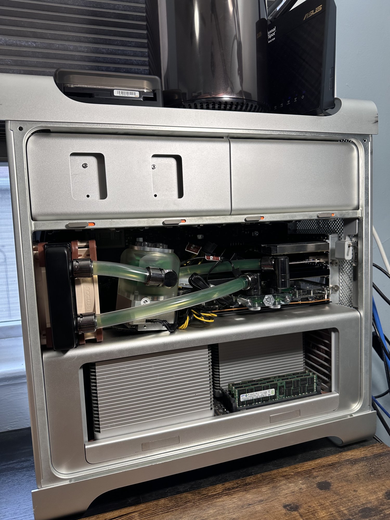 Just finished water cooling my mac. I haven't seen this done yet. The first custom loop in a Mac Pro without cutting or modding the case.