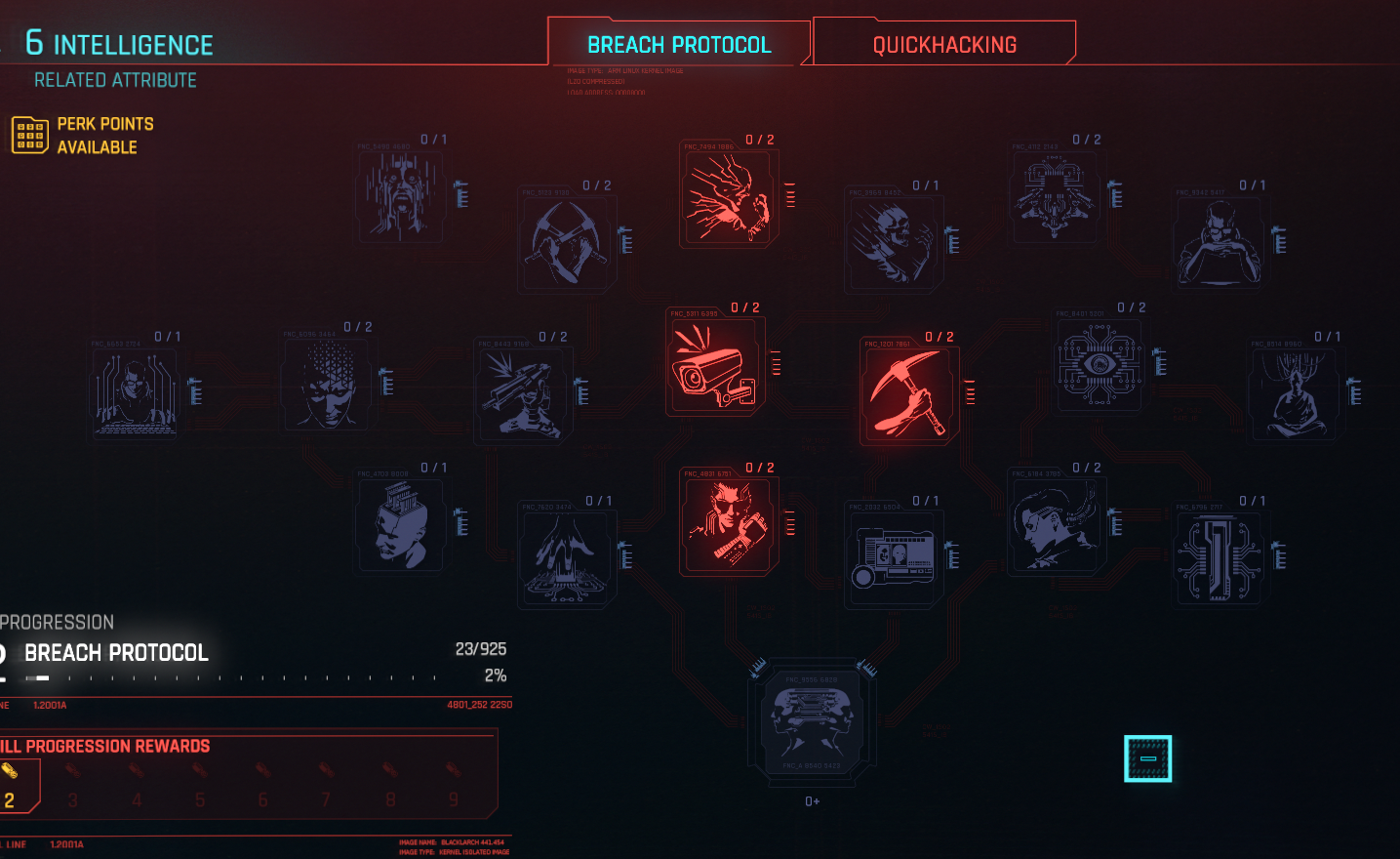 - Intelligence: Breach Protocol: Big Sleep- Disables all cameras in the network for 3 min.