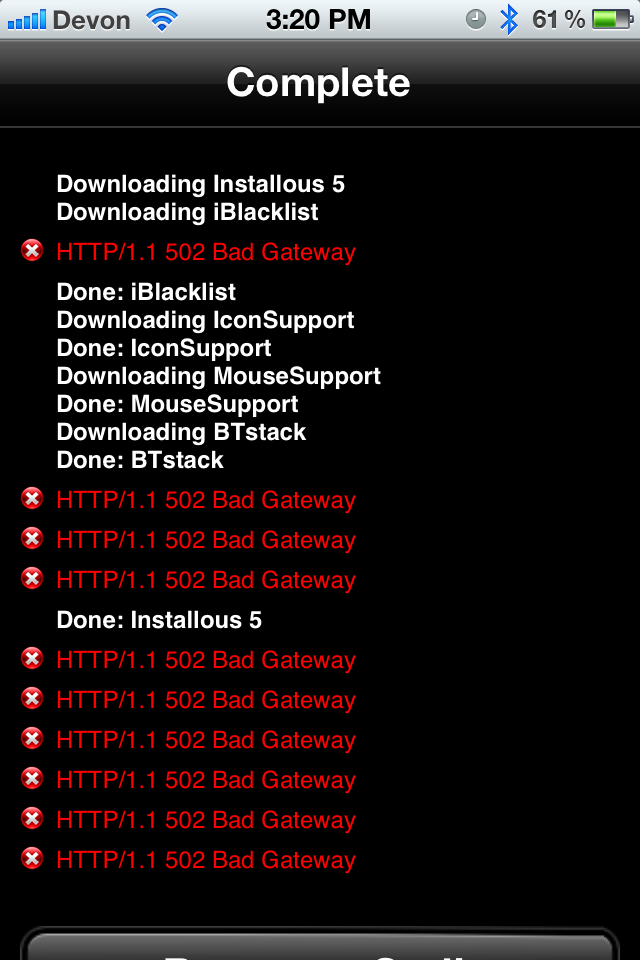 Anytime I try to do my upgrades in cydia or download any new tweaks/packages I get either HTTP 502: Bad Gateway or POSIX: Operation Time Out error and I cannot get past it.