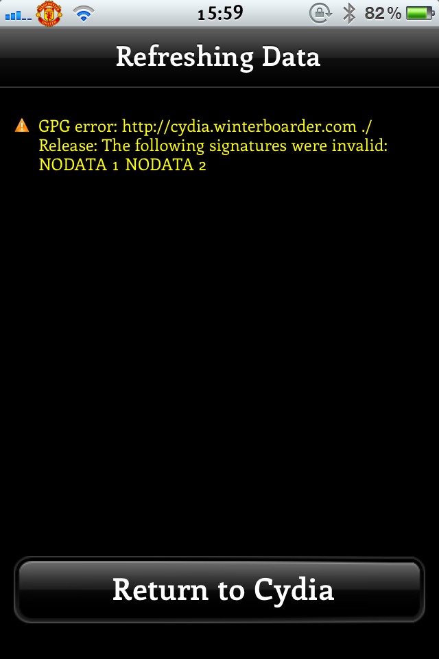slayer666 said: I'm on IOS 5.1.1 iPhone 4S and when Cydia loads I always get this pop up is there any way to fix that? View attachment 407018 Click to expand... Looks like that source is invalid. Remove it and see what happens.
