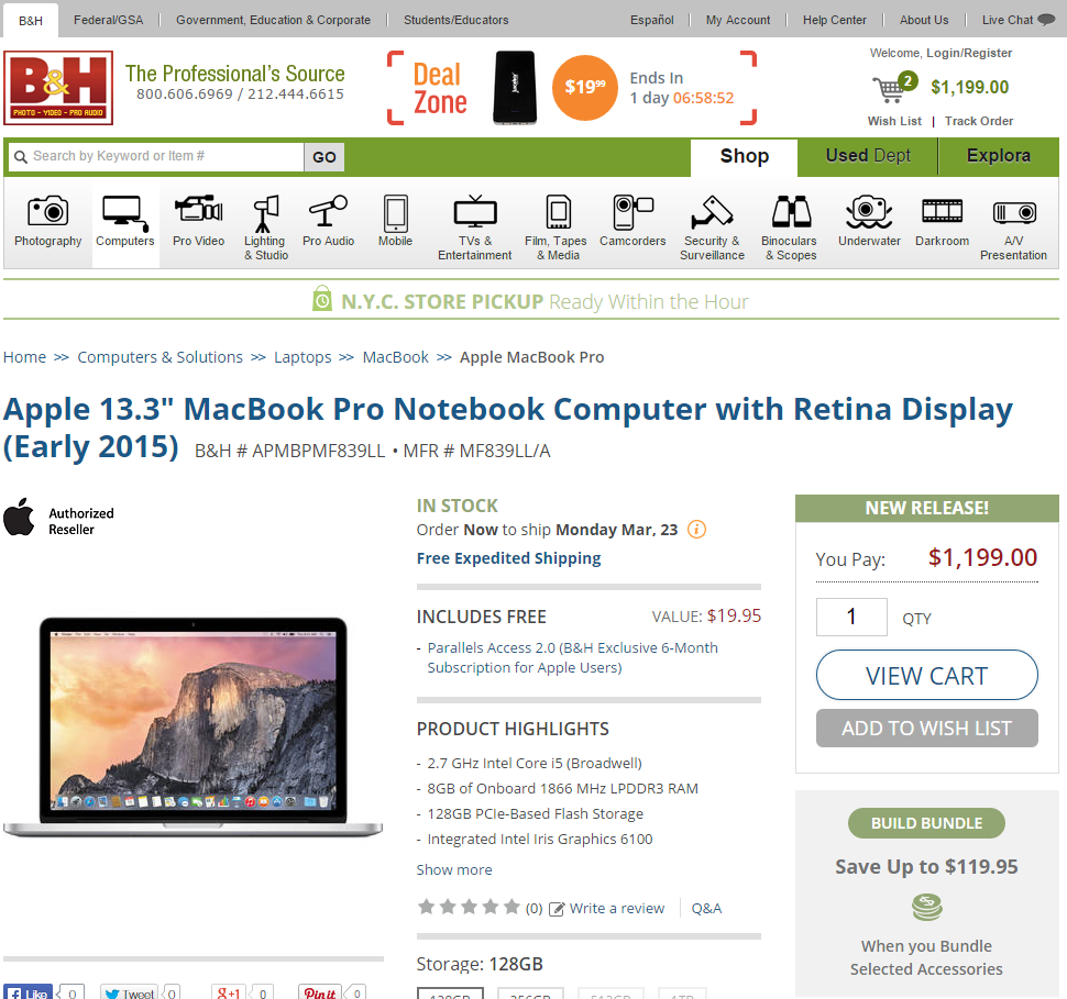 Just saw this, $1299 from Apple plus tax. $1199 BH Photo, no tax (for most), free shipping!