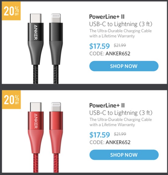 [*]Powerline Lightning Cable (6ft, 2-pack) - $14.99, down from $19.99