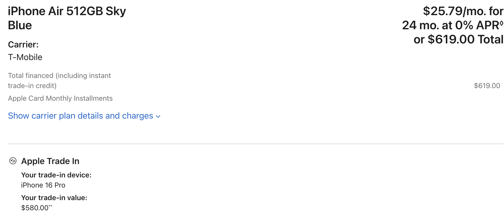 $580 trade in and the 512GB Air = $619 cost.