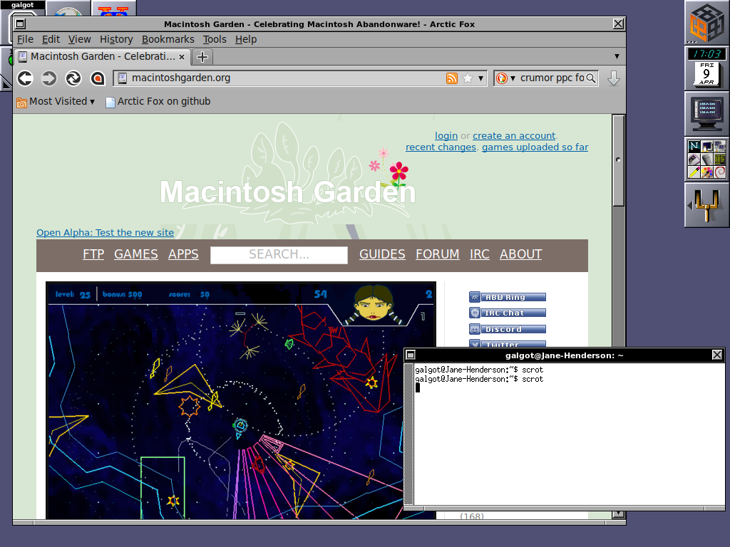 - ArcticFox from Wicknix , Just works ! It’s the only graphic browser that works OK out of the box. This is before I do any changes in the settings. Sure loading a page like MacRumor forum is slow as molasses. But I would rate it as trying to do the same in Classilla on the Mac OS8.6 partition. But for lighter pages like System7Today or non-https MacGarden page it’s about the same, equivalent to Classilla in MacOS…