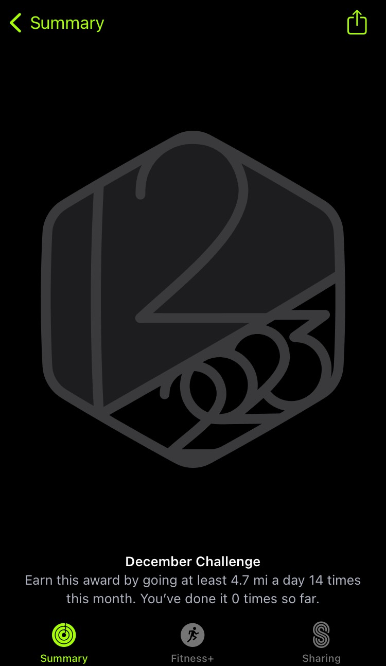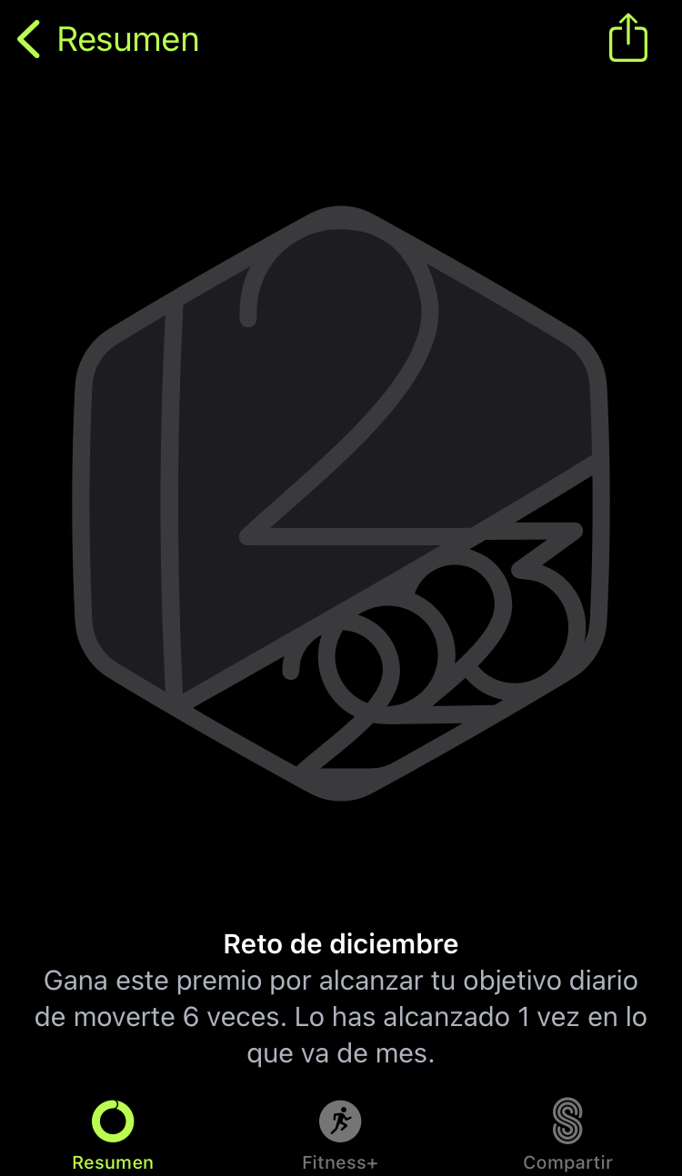 It’s in Spanish, my mother language. It says: “Win this price/challenge by reaching your daily (movement) goal 6 times. You’ve done it 1 time so far this month”. I think it’s a pretty easy challenge but this month I wasn’t planning to walk a lot, to be honest.