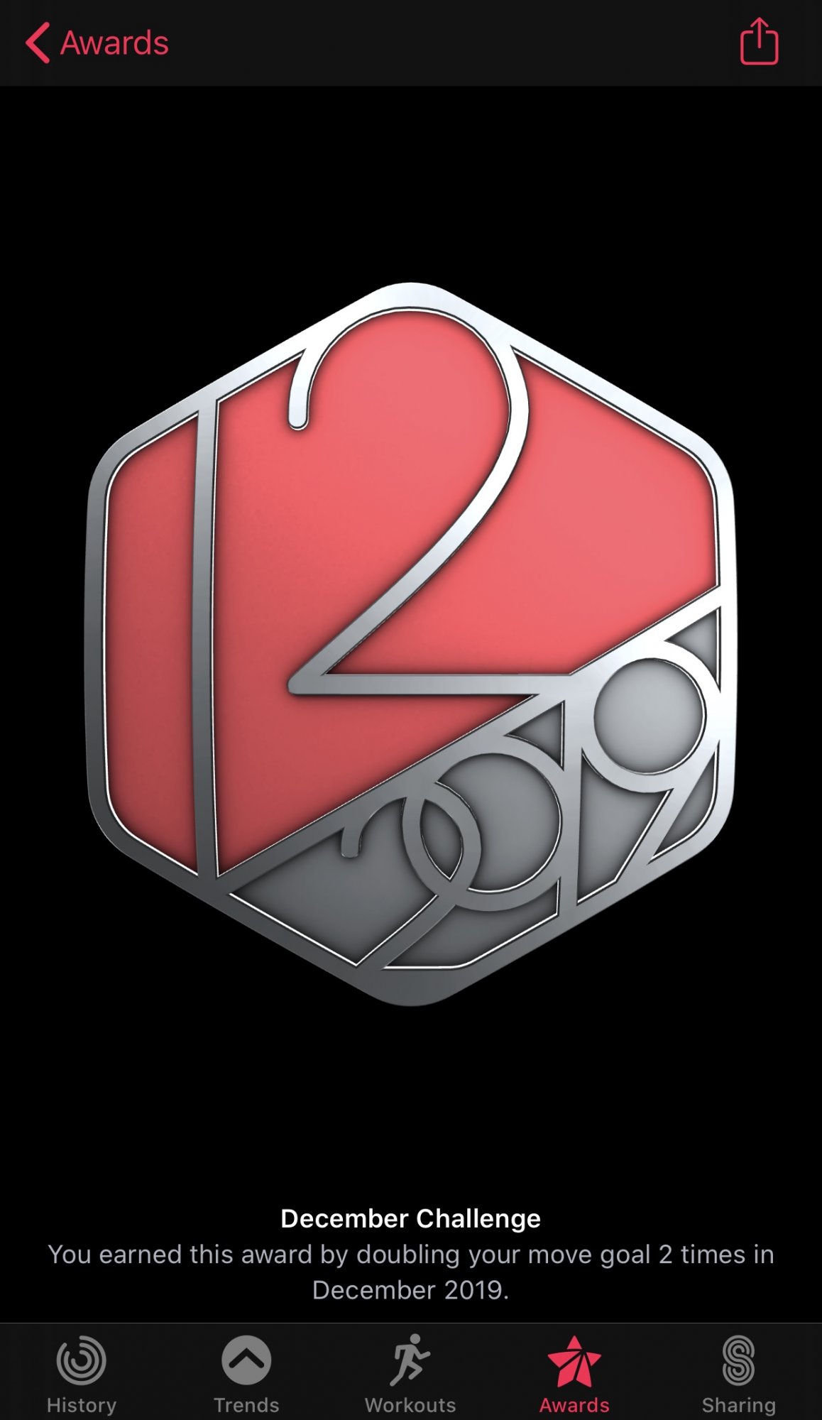 good for you!I have to double my move goal 29 more timesWell that puts December and 2019 to rest!! Got a super easy December challenge (see above) and rattled it off in first 2 days!!